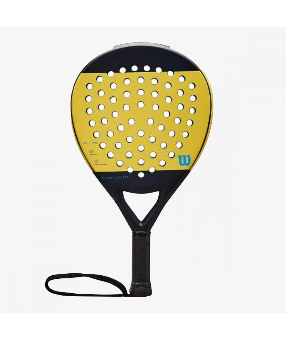 The Wilson Juice Team 2 is a mid-range padel racket from Wilson, known for its excellent value for money. Its design includes an attractive yellow color on most sides, with black edges, handle and top.